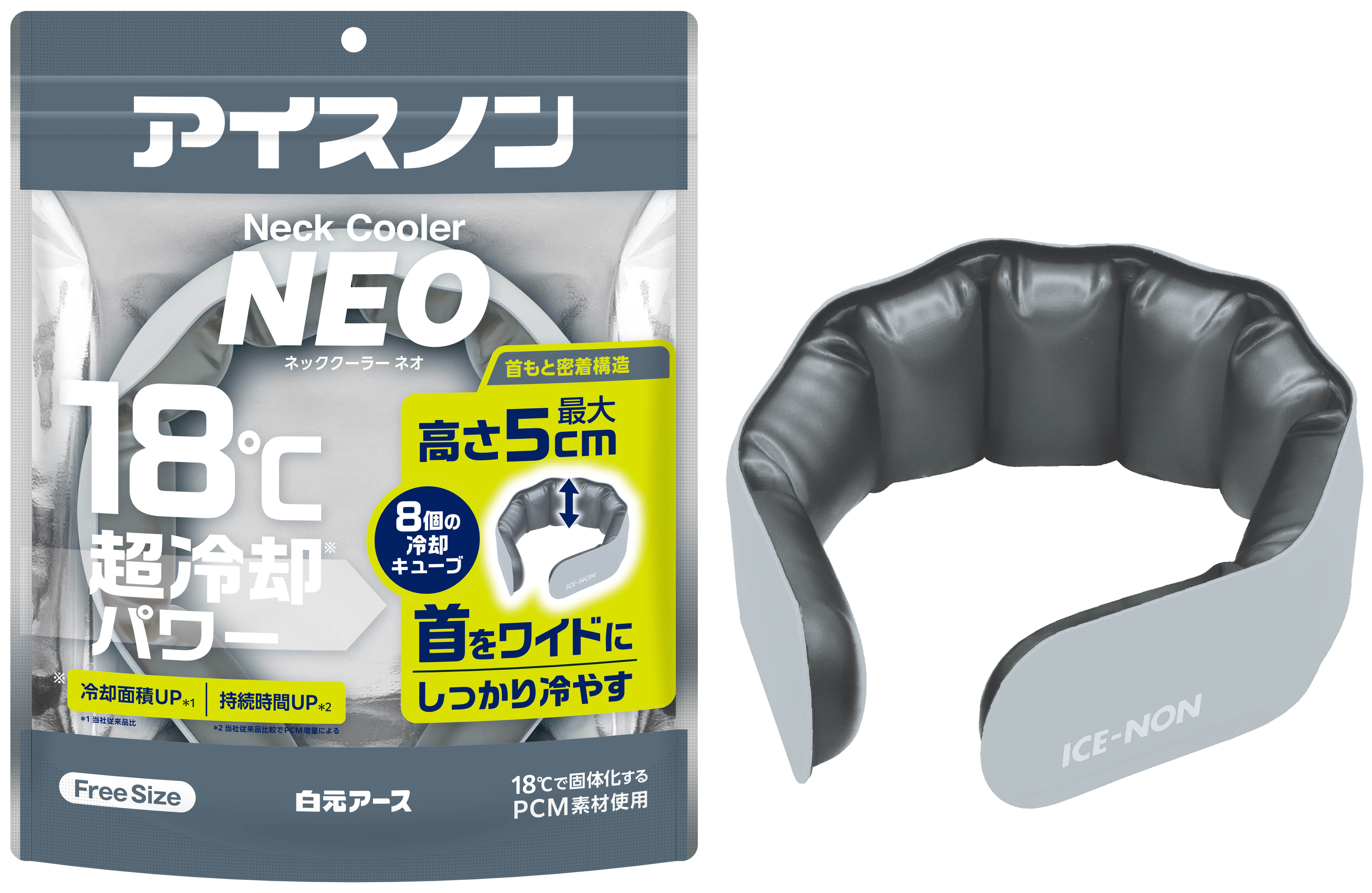 18℃の超冷却※パワー!8個の冷却キューブで首をワイドにしっかり冷やす新形状のネックリング『アイスノン ネッククーラー NEO』数量限定発売
