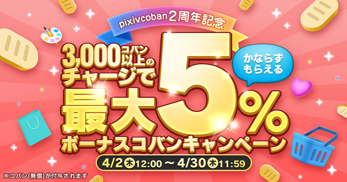 プリペイド式電子マネー「pixivcoban」がリリースから2周年!2年間で累計利用ユーザーが14万人を突破。最大5%がもらえるボーナスコバンキャンペーンを実施! -