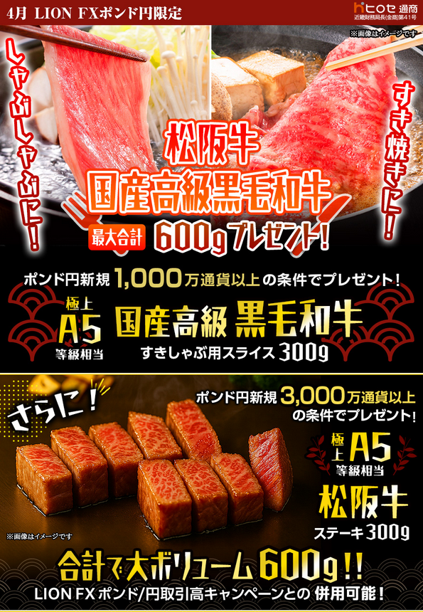 LION FXポンド円限定 松阪牛・国産高級黒毛和牛最大600gプレゼント!を実施! -