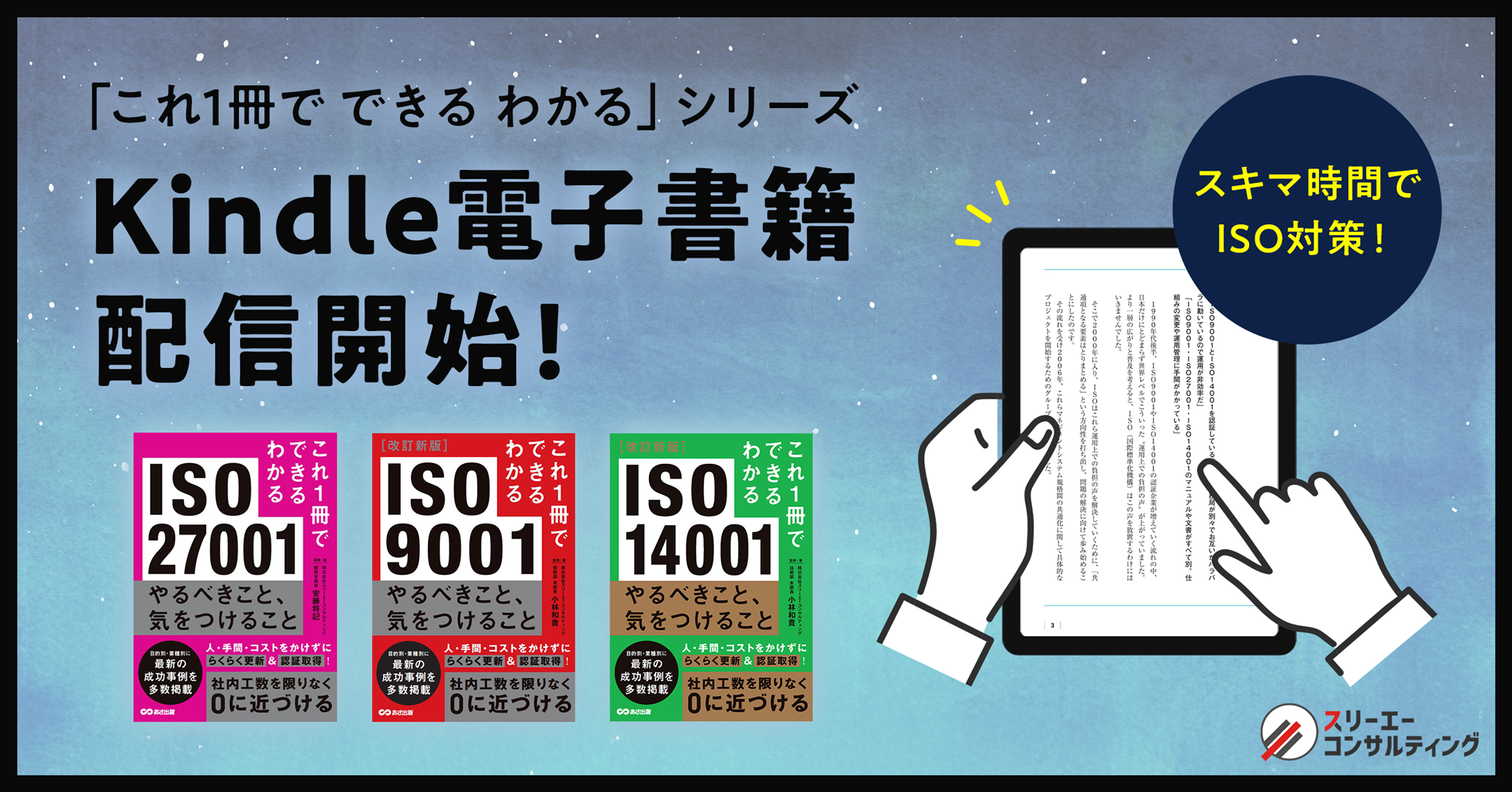 ISO/Pマーク支援実績8,000社超のノウハウを結集『これ1冊でできるわかる』ISOシリーズ3冊、Kindleストアで配信開始 ~ISOを日常業務に活かし、認証・運用の負担を最小限に抑えるメソッド~ -