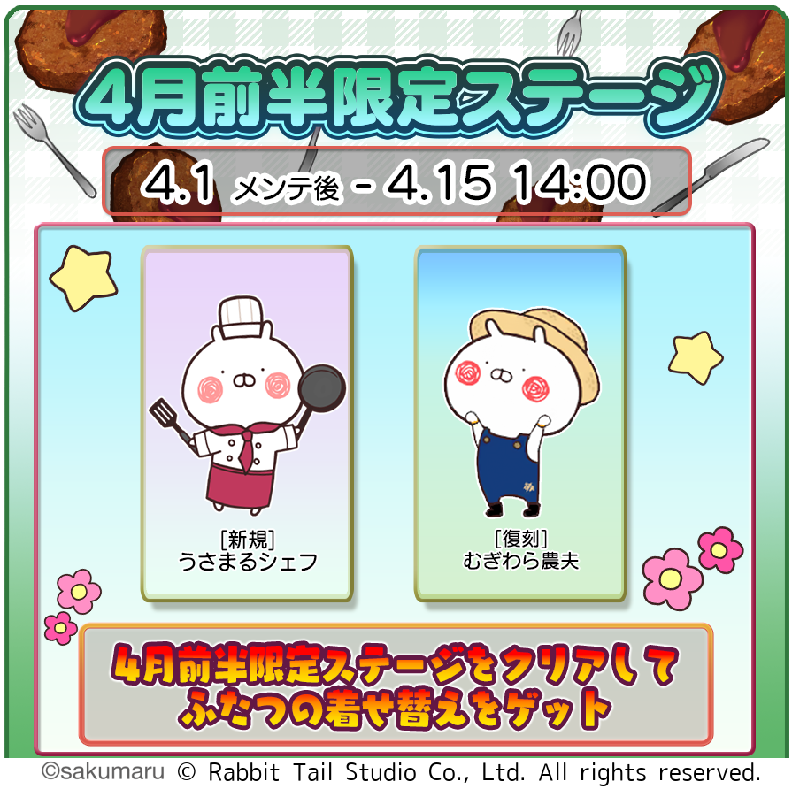 『うさまるキッチン』4月前半限定新規着せ替えが登場! -