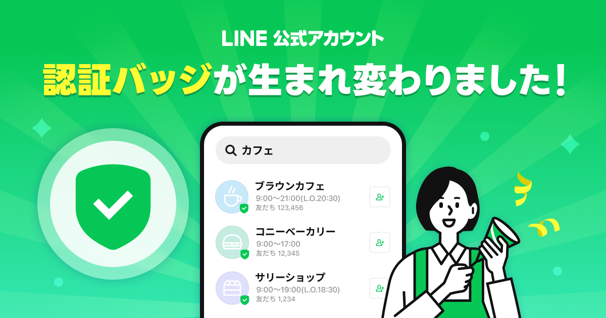 「LINE公式アカウント」の認証バッジを刷新、国内の認証済アカウントは緑色のチェックマークに統一 -