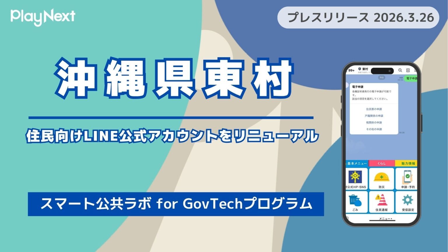 沖縄県東村が住民向けLINE公式アカウントをリニューアル!プレイネクストラボ株式会社がシステム提供と構築を支援 -