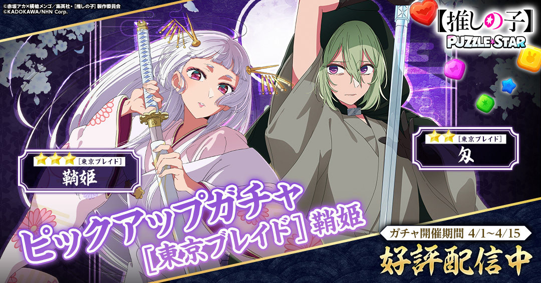 TVアニメ『【推しの子】』初の公式パズルゲーム『【推しの子】Puzzle Star』本日よりピックアップガチャ[東京ブレイド]第3弾を開催!ピックアップキャラは鞘姫と匁 -
