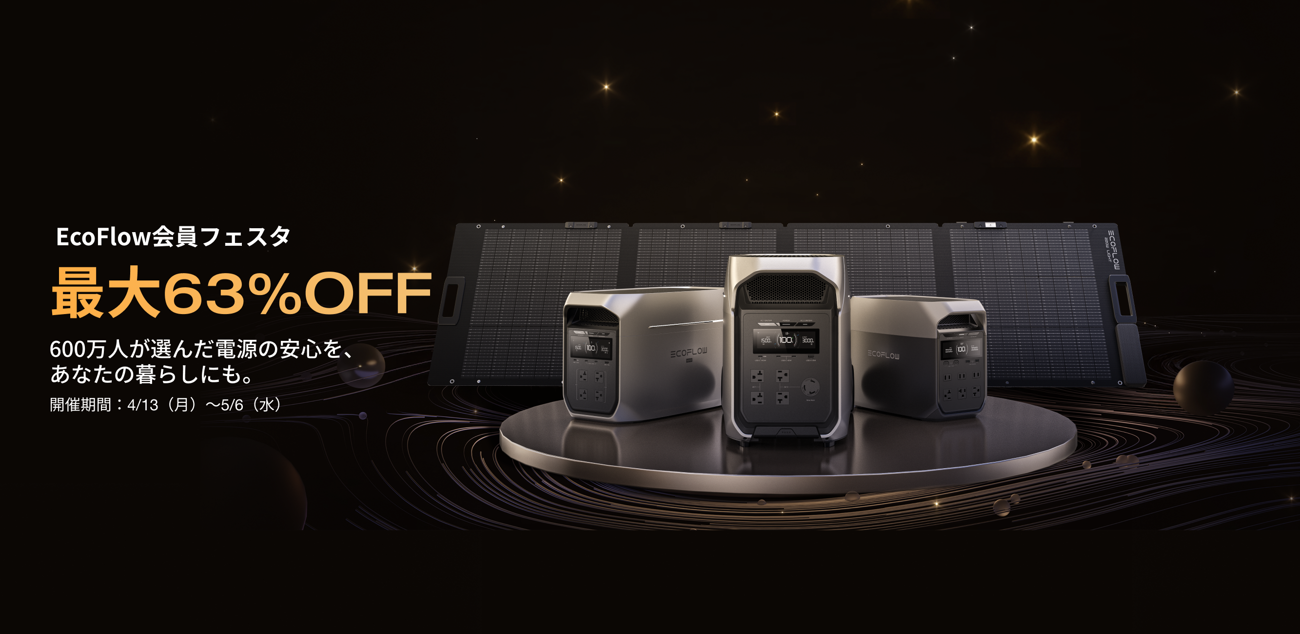 世界140カ国・600万ユーザーに選ばれた「電気の安心」をその手に。EcoFlow、最大63%OFFの「会員フェスタ」を4月13日より開催。 -