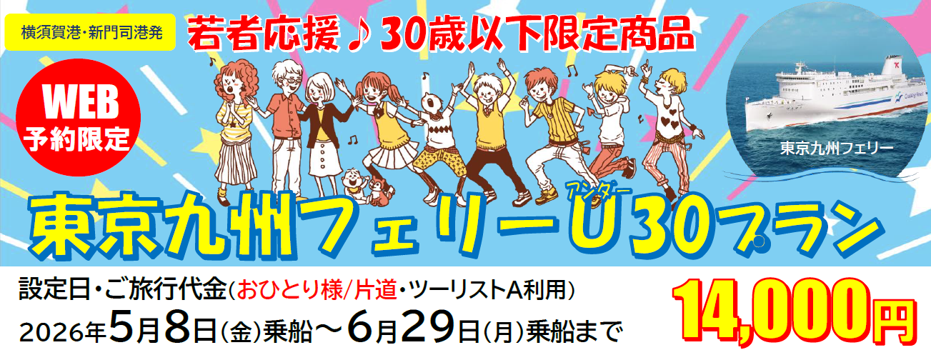 【新門司港発】30歳以下限定!船旅でGO!旅行にも帰省にも使える「東京九州フェリーU30プラン」5月・6月乗船発売! -