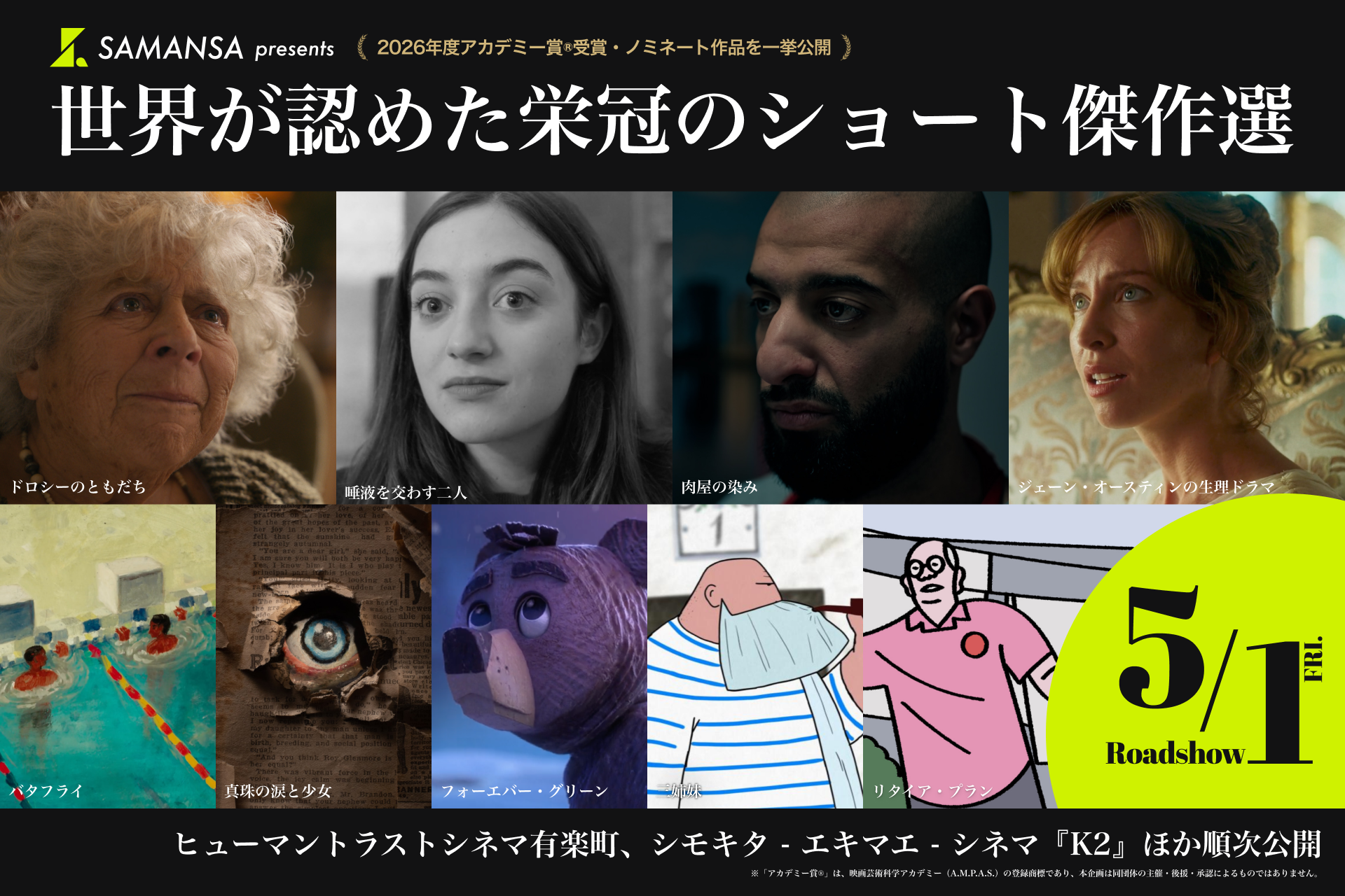 【追加上映館決定】ショート映画の「SAMANSA」が仕掛ける《アカデミー賞(R)短編特別上映》が拡大!下北沢での劇場上映も決定 -