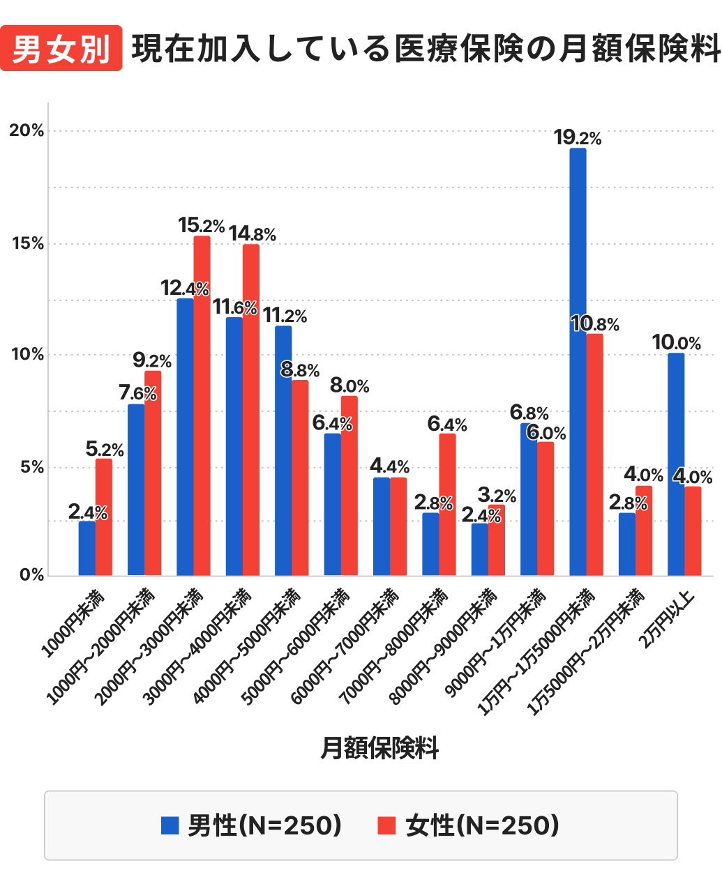 【ほけんのコスパ独自調査】医療保険の月額保険料は「2000円~4000円」と「1万円以上」の2極化の傾向 -