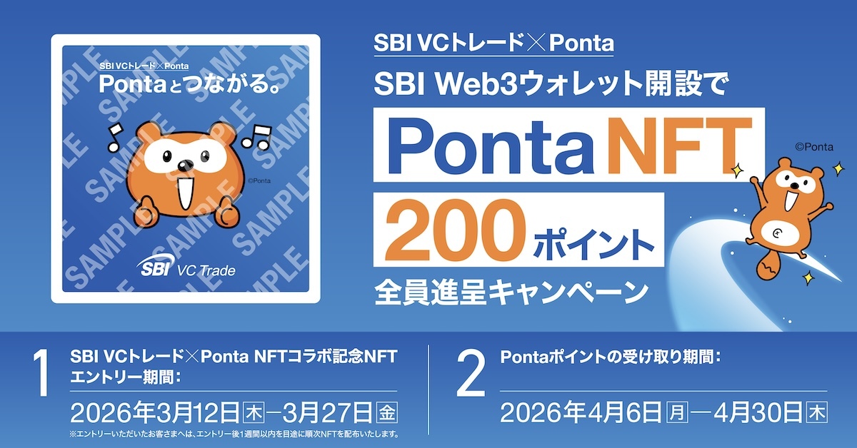【 SBI VCトレード×Ponta 】SBI Web3ウォレット開設でPonta NFT&200ポイント全員進呈キャンペーン