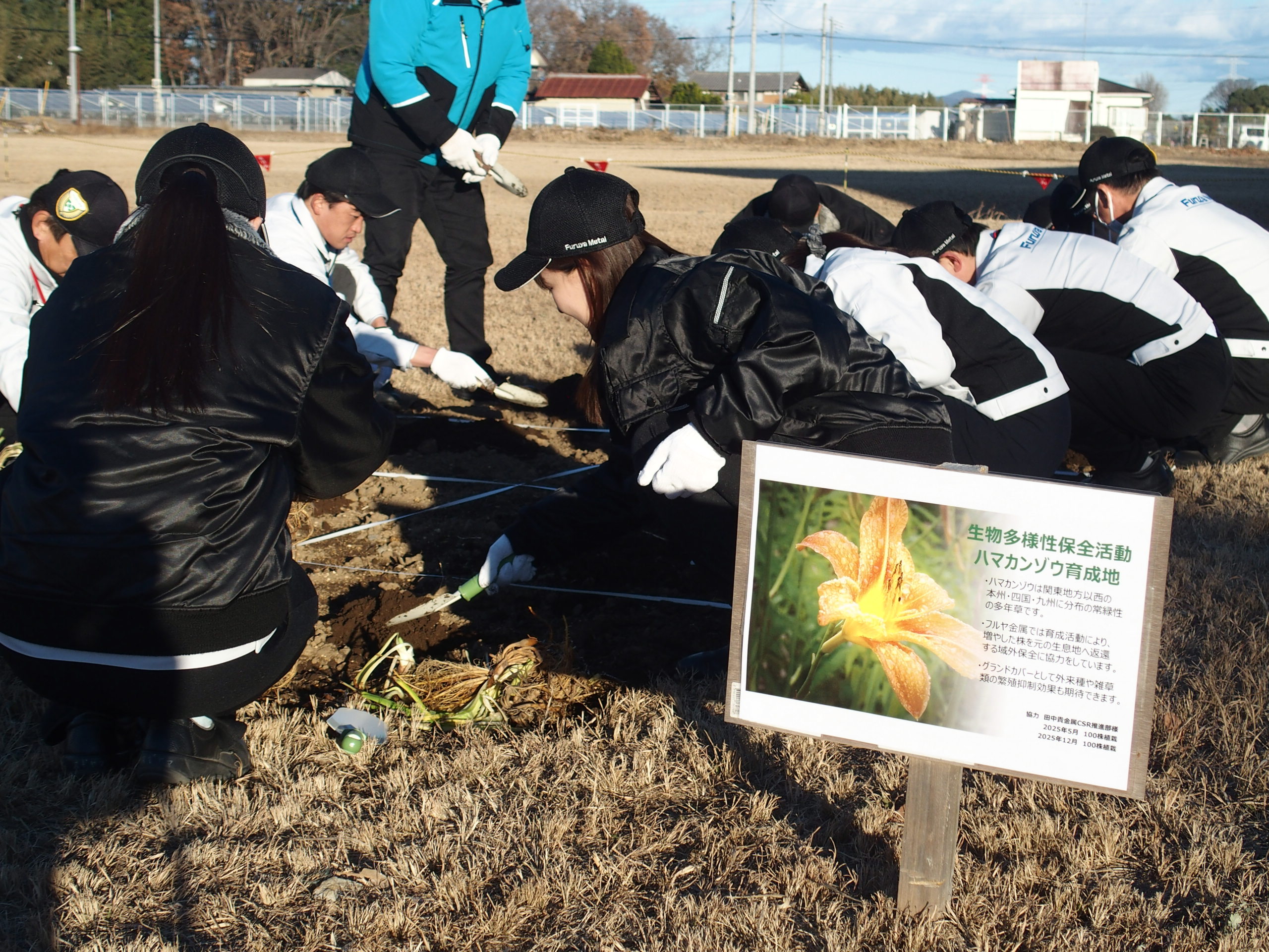 茨城県筑西市のつくば工場にて、ハマカンゾウ110株の追加植栽を実施