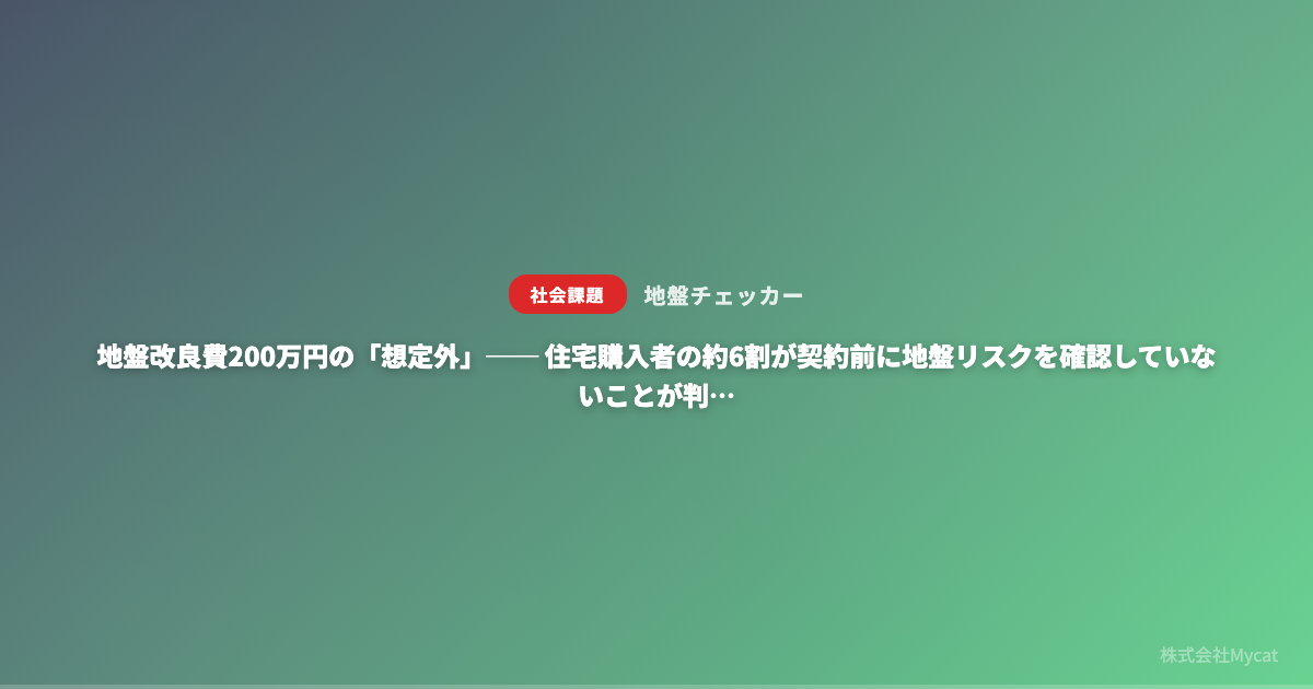 地盤改良費200万円の「想定外」── 住宅購入者の約6割が契約前に地盤リスクを確認していないことが判明