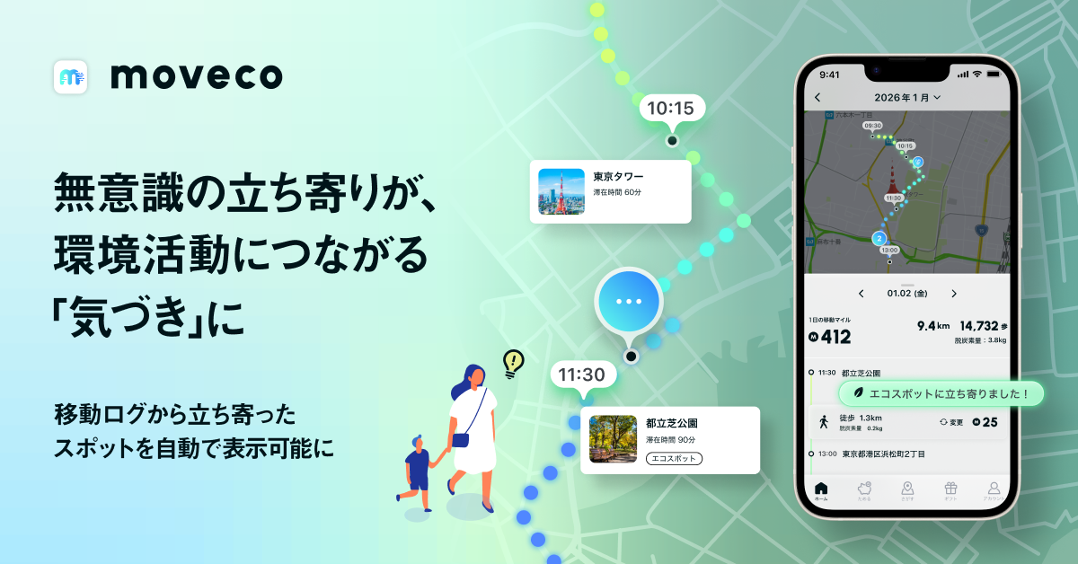 エコな移動をサポートするエコ活アプリ『moveco by NAVITIME』、「エコスポット」へのチェックイン機能を追加