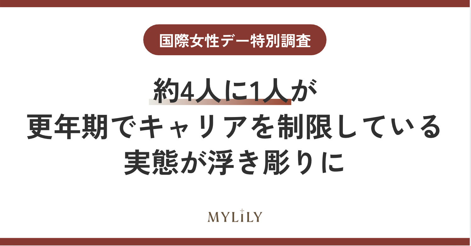 【国際女性デー】約4人に1人が更年期にキャリアを制限している実態が浮き彫りに。職場の理解不足と更年期症状は「病気ではない」という思い込みが、専門医療へのアクセスに大きく影響