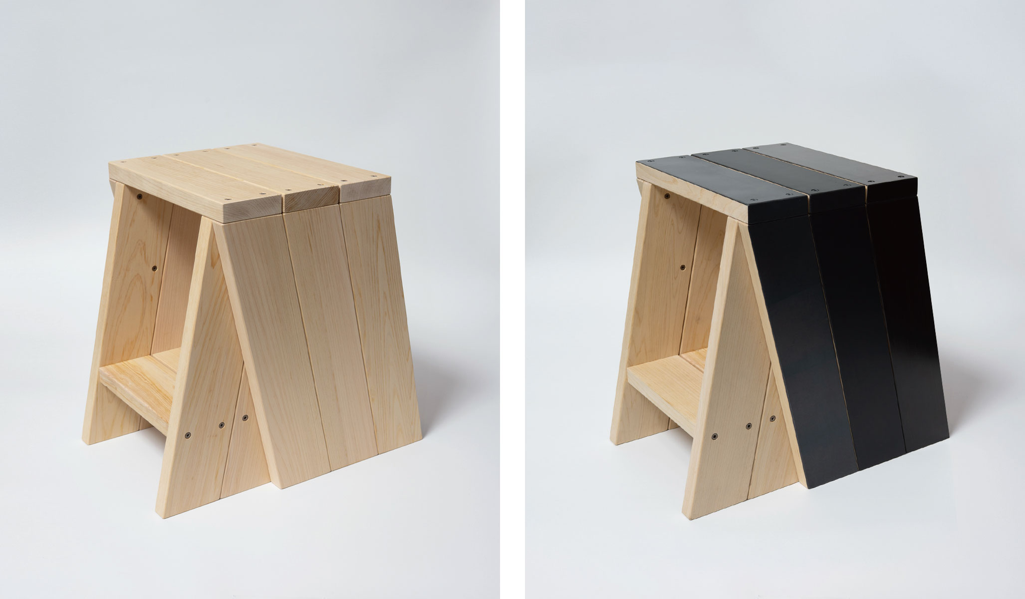 〈石巻工房 × クラフトシップス〉「AA LOW STOOL」に黒箔・拭漆・吹付塗装を重ねた特別仕様の限定モデルを発表。