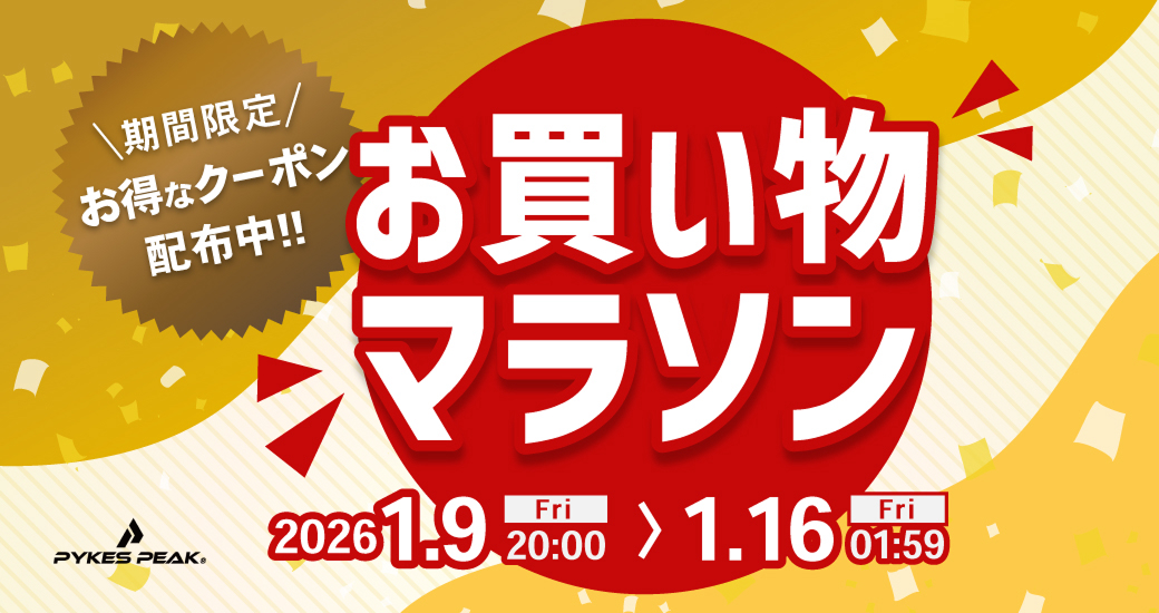 【楽天お買い物マラソン】全品5%OFF+人気カテゴリー別クーポン配布!PYKES PEAK 楽天市場店でお得なキャンペーンを実施。
