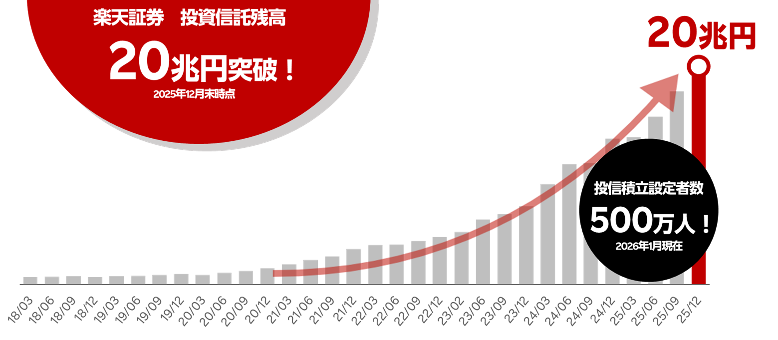 楽天証券、投資信託残高20兆円、投信積立設定者500万人突破のお知らせ
