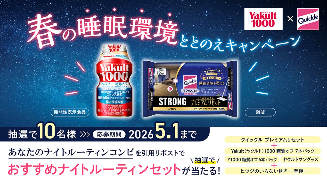 <睡眠環境を整えるおやすみ習慣>「クイックル」とヤクルト1000シリーズが初コラボ ナイトルーティンセットが当たる『春の睡眠環境ととのえキャンペーン』を2026年4月20日より開始