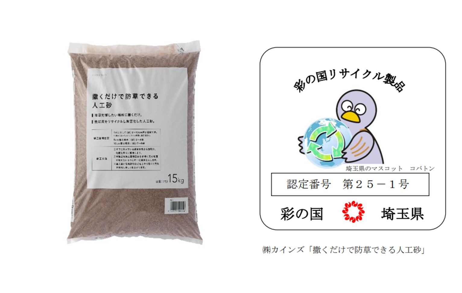 カインズの「撒くだけで防草できる人工砂」が埼玉県「彩の国リサイクル製品」に認定