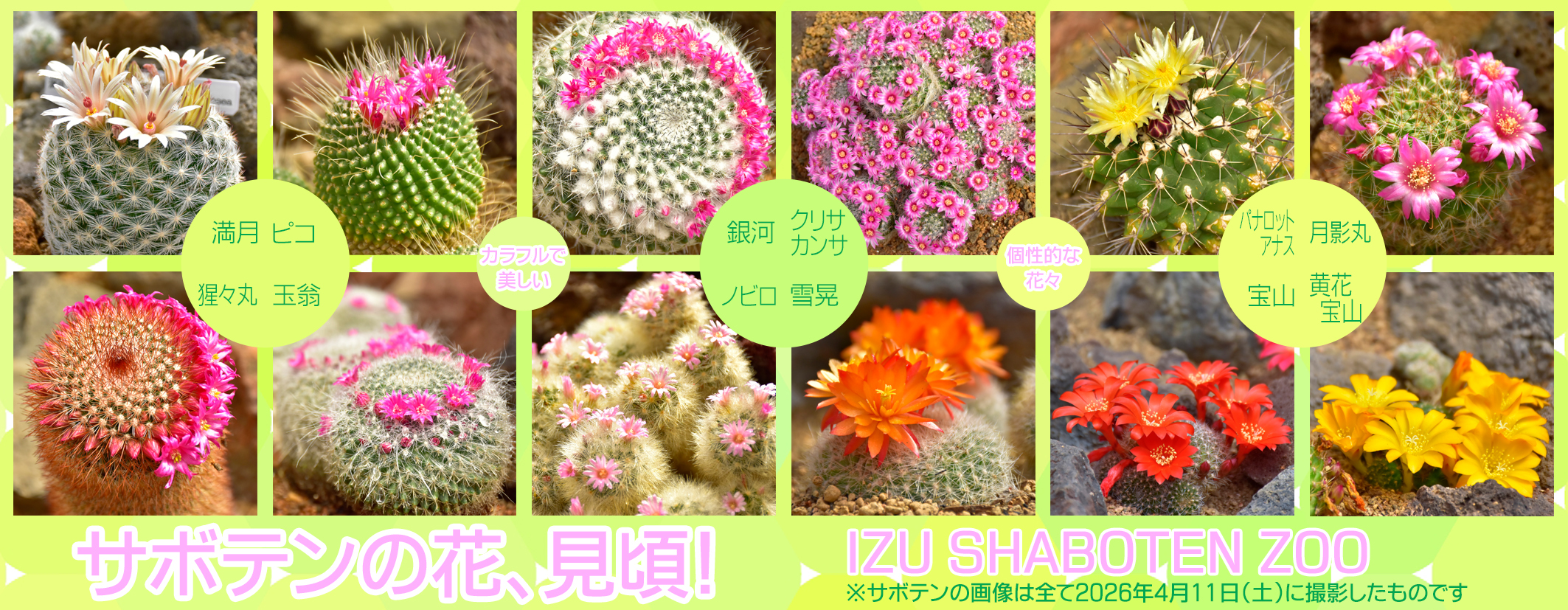 カラフルで美しいサボテンの花が「シャボテン温室」で見頃に!春から初夏にかけて、伊豆シャボテン動物公園ならではの光景が楽しめる