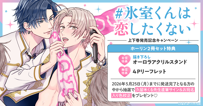 直筆サイン入り色校正が当たる!久留米くる先生『#氷室くんは恋したくない』上下巻発売記念キャンペーン開催!【ホーリンラブブックス】