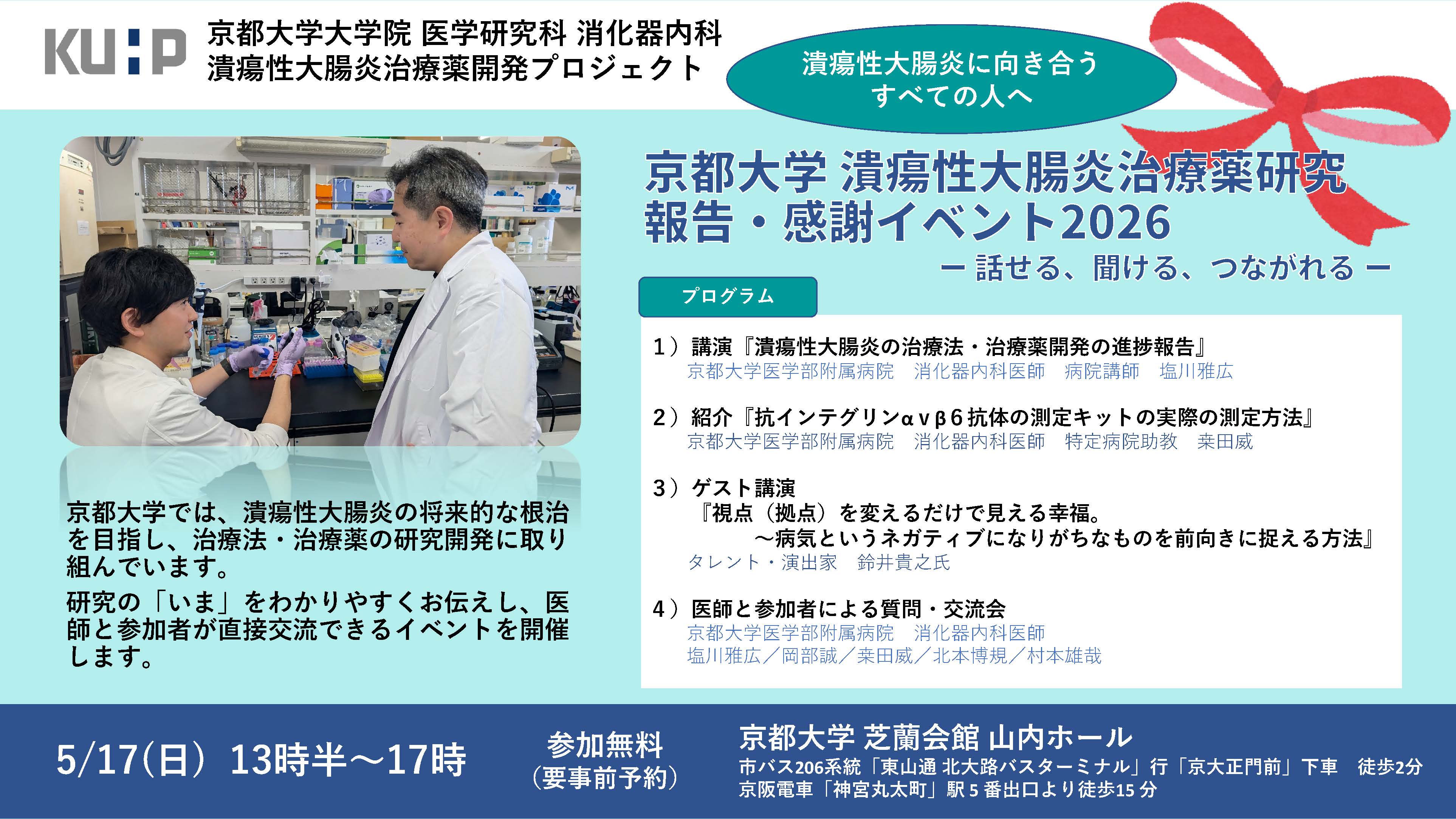 京都大学、潰瘍性大腸炎の理解と根治を目指す研究報告イベント開催