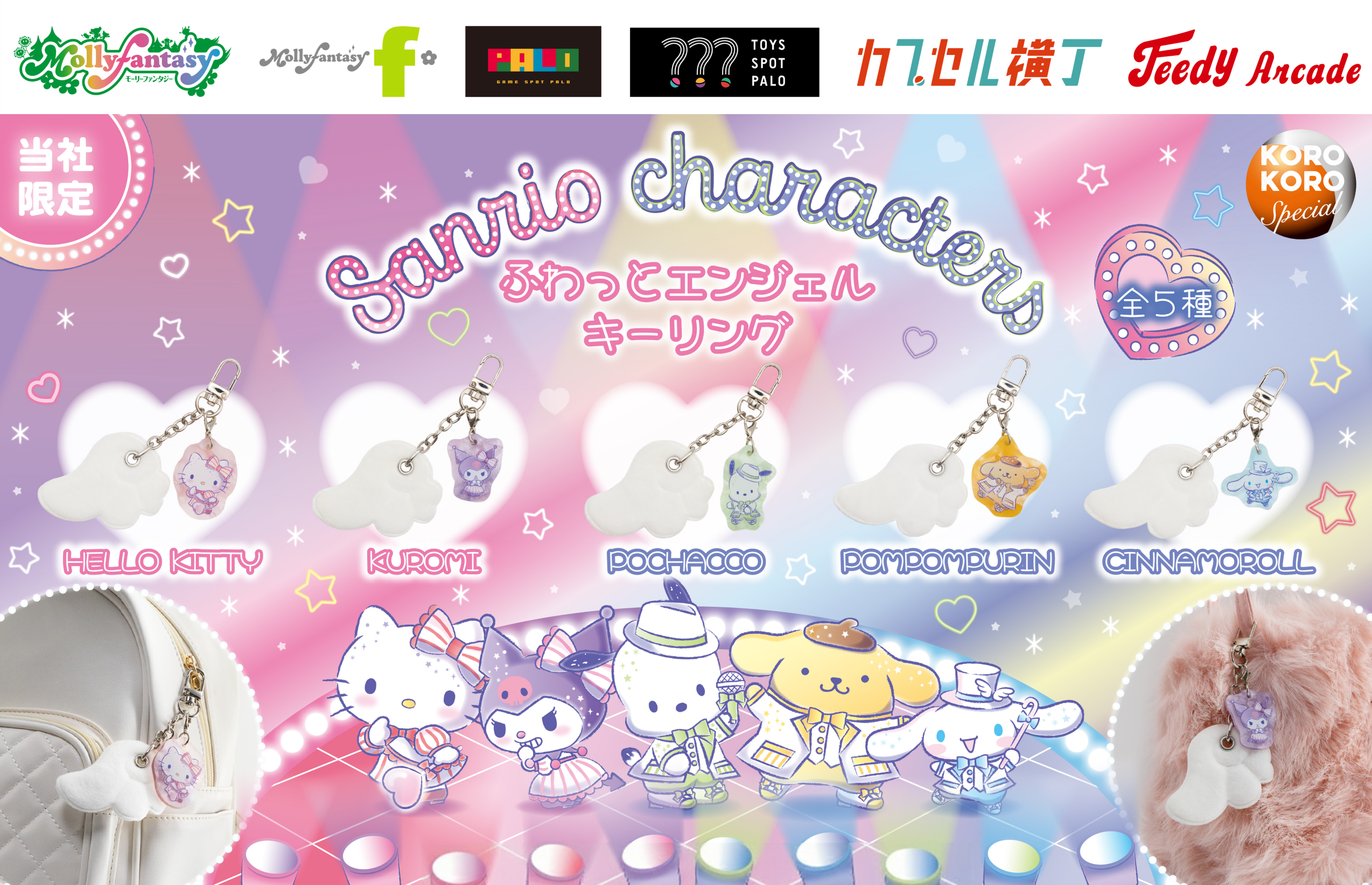 アイドルコスチューム風デザインの『サンリオキャラクターズ』のカプセルトイが登場! ふんわり揺れる羽チャームがかわいい「ふわっとエンジェルキーリング」を3月12日(木)より「かぷえぼ」にて展開開始