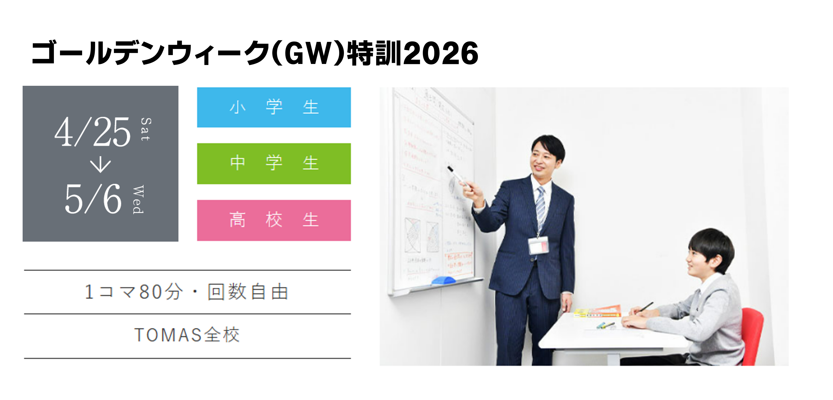 【中学受験】GWは夏への土台作り最大のチャンス ─「2026年度入試 GW特訓」4月25日(土)より開講!