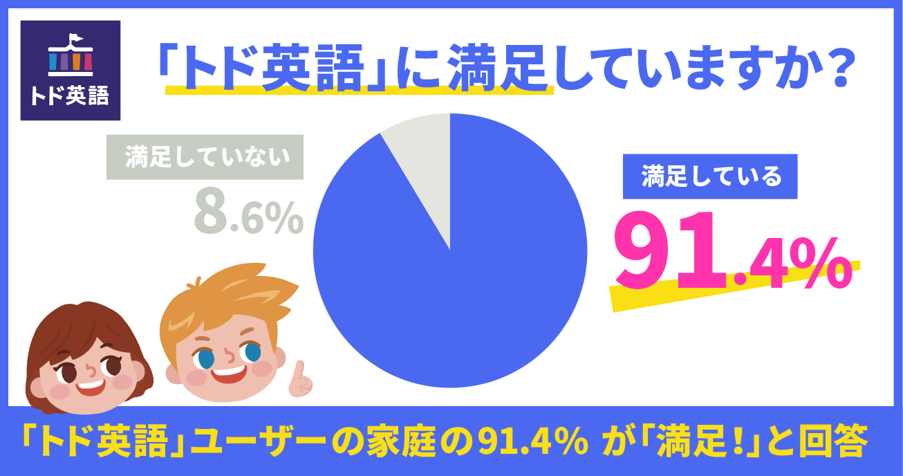 【子ども向け英語学習アプリ「トド英語」顧客満足度調査】「トド英語」ユーザーの家庭の91.4%が「満足!」と回答