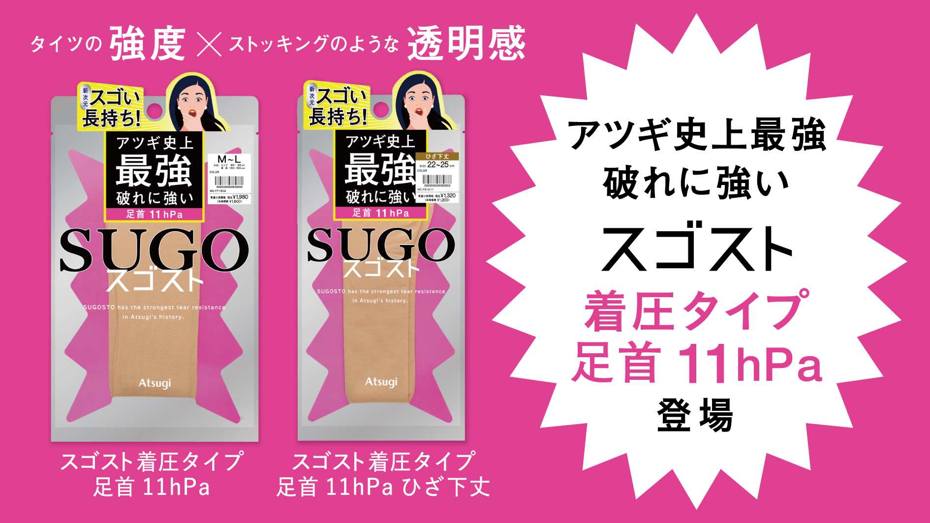 アツギ史上最強 破れに強い新次元レッグウェア「スゴスト」に着圧タイプ足首11hPaが新登場