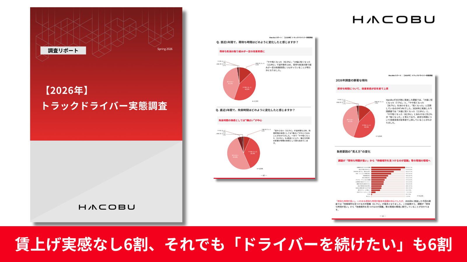 賃上げ実感なし6割、それでも「ドライバーを続けたい」も6割。Hacobu、【2026年】トラックドライバー実態調査を実施