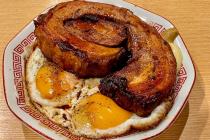 キングチャーシュー定食をご存知ですか。1枚が3センチ厚で、300グラムもあるキングチャーシューをソテーして甘辛く味付けし、キャベツと目玉焼きの上に盛り付けてあります。巨大なチャーシューをかぶりつく快感を経験させてくれる、練馬の名物料理を紹介します。