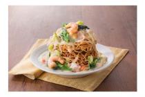 中華料理チェーン「バーミヤン」が中国・西安の屋台メニュー「ビャンビャン麺」と、「海老と菜の花のタワーかた焼そば」を新発売!
