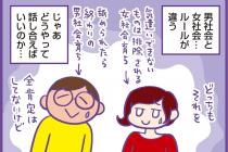 お互いに離婚経験のあるさるころ&ノダD。再婚後「離婚したくない!」という一心で「問題は、お互い我慢しないで解決する」を目指す。問題解決までを夫婦どっちもの目線でお届けします。今回は『男社会と女社会ルールの違いの巻』の【男性的じゃないと通じない?編】です。