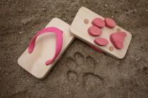 ゲームや動画など、子どもの遊び方にもどんどん変化が訪れていますが、それでも外が大好きな子どもたちにぜひ履いて欲しい、楽しみながら学べる下駄が誕生しました。砂の上を歩くとかわいい動物の足跡がつく「ashiato」をご紹介します。