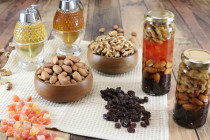 ナッツやドライフルーツを選んだ瓶に詰めたら、蜂蜜をそ~っと流し込んで完成!自分好みの蜂蜜漬けを作ることができます。