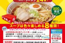 福島県喜多方市の株式会社河京が、500個限定の「2025福麺箱」を販売中!定番の醤油ラーメンを含む8種類・計24食の喜多方ラーメンが詰まった特別なセットです。通常7,500円(税込)の内容が、送料無料で5,500円(税込)と超お得!