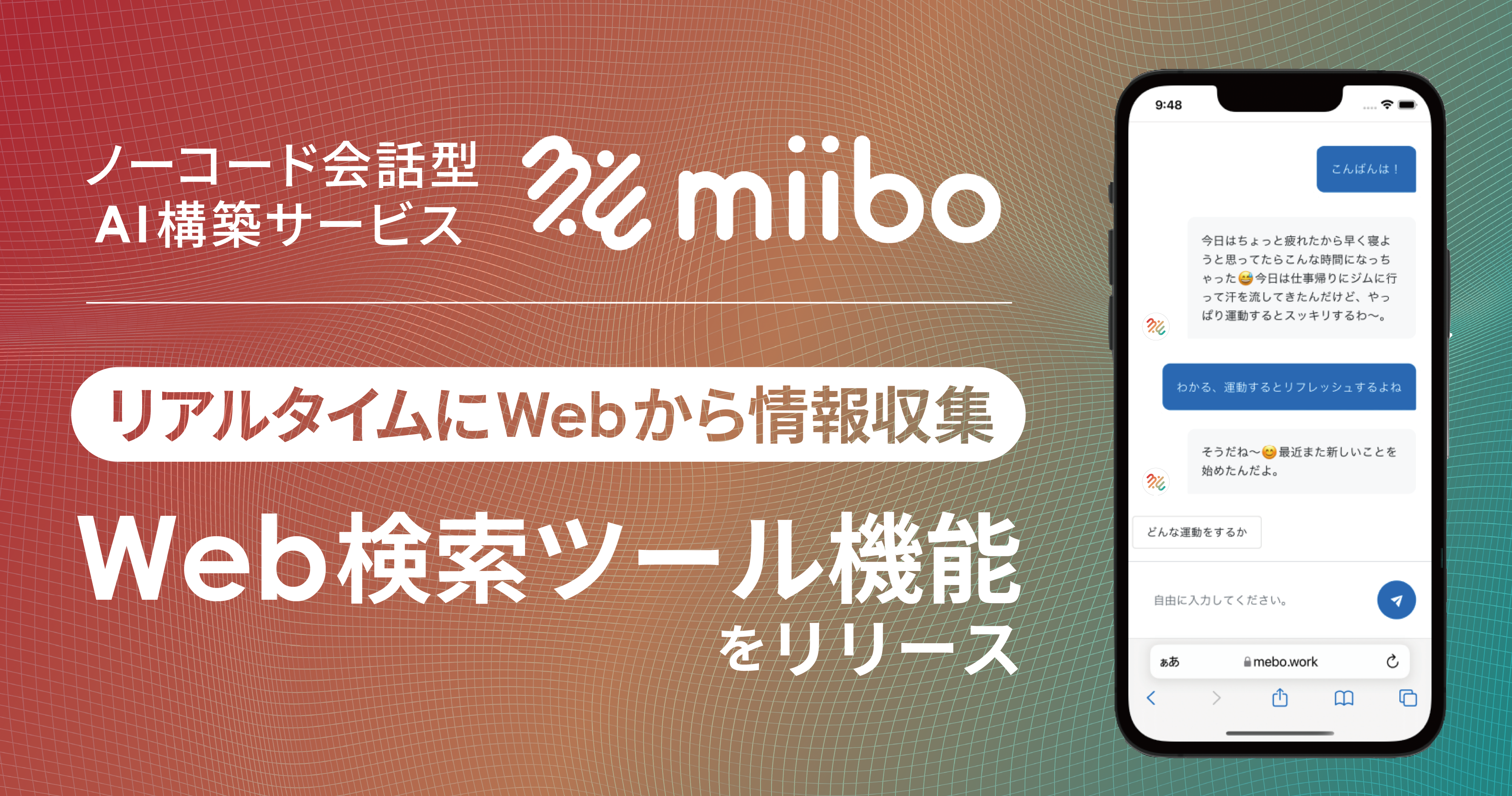 ノーコード会話型AI構築サービス「miibo」、新機能「Web検索ツール機能」をリリース