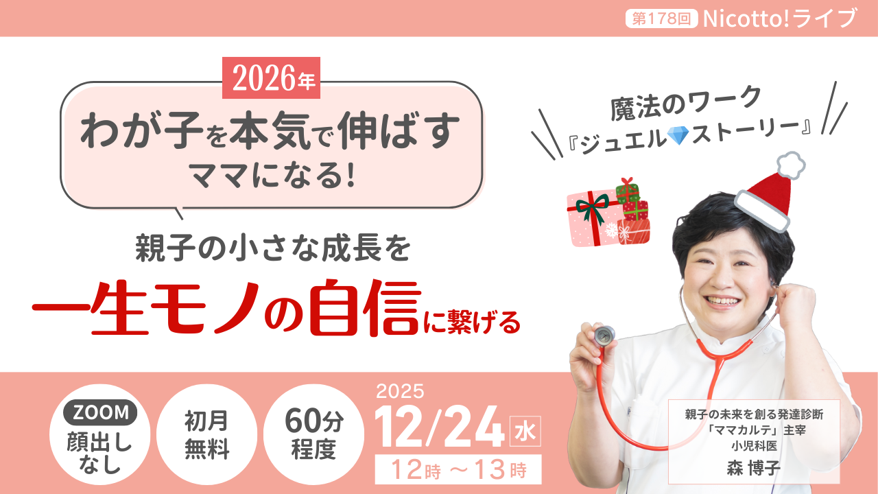 【小児科医×発達の専門家】叱ってばかりの年末に--わが子の「できた!」を見つけ親子の自信を育てるワークの体験オンラインライブを12/24開催 -