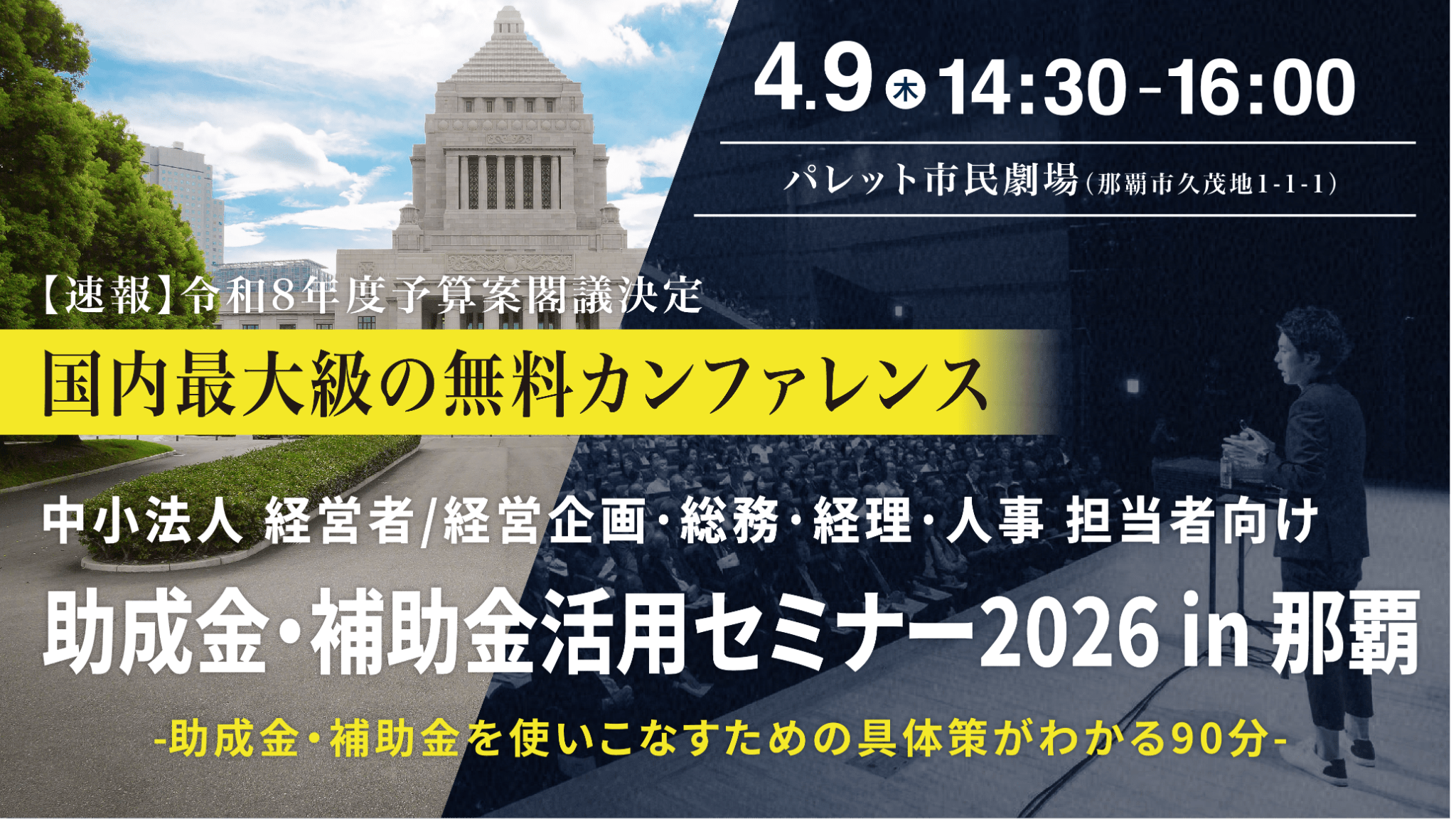 【満員御礼】中小法人が今すぐ活用できる制度を解説「助成金・補助金活用セミナー2026 in 那覇」4/9(木)開催 -
