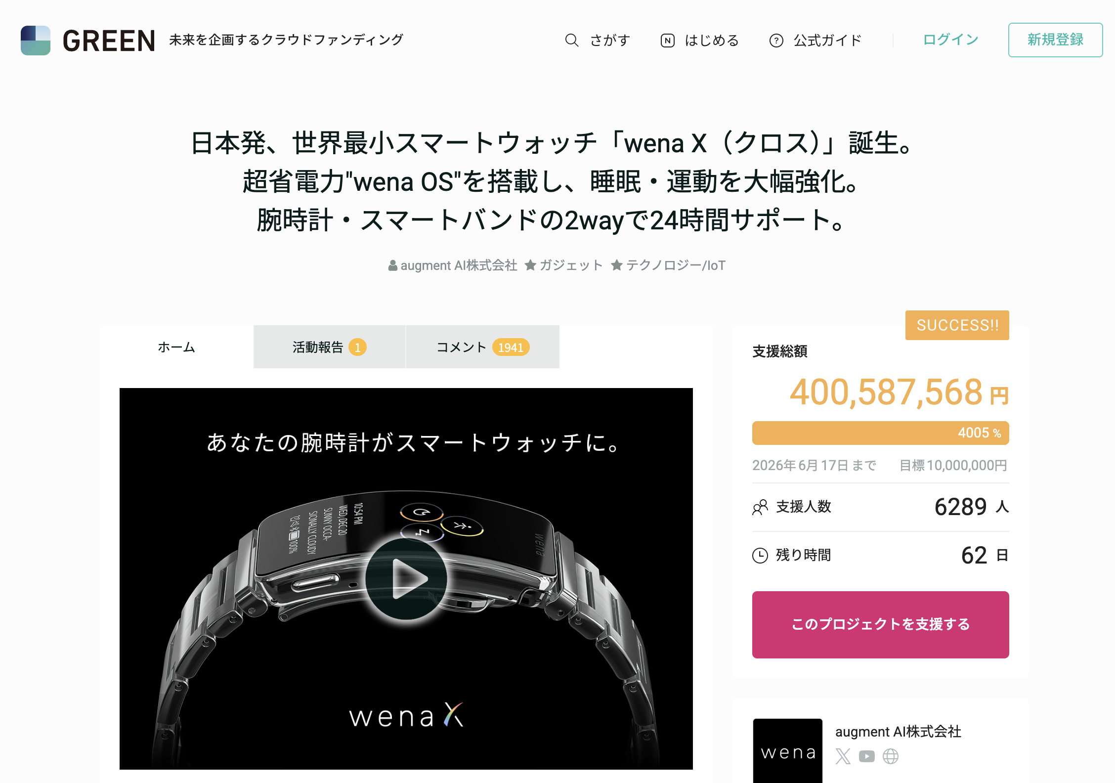 「wena X」クラウドファンディング支援額4億円突破!支援者要望に応え、バンド・エンドピース単品プランを新設。
