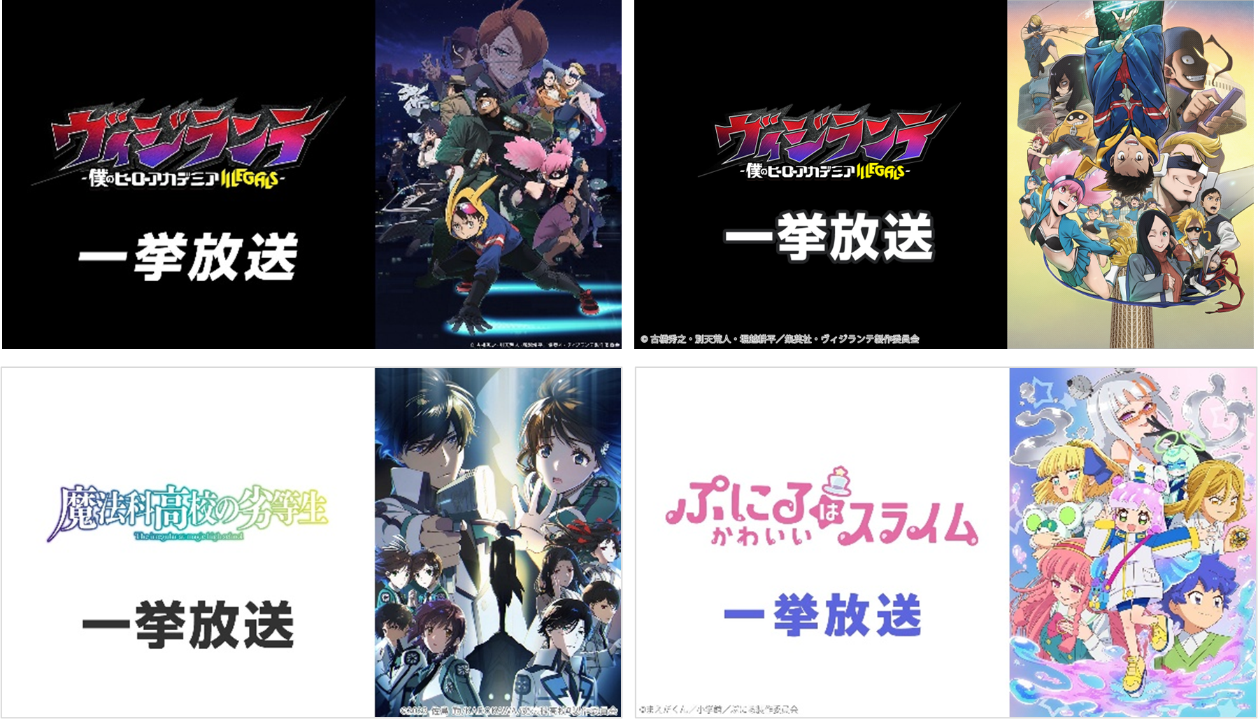 【GW特別企画】ニコ生アニメ無料一挙放送が決定!『僕のヒーローアカデミア』関連作、『魔法科高校の劣等生 第3シーズン』『ぷにるはかわいいスライム』第2期など全8作品がラインアップ -