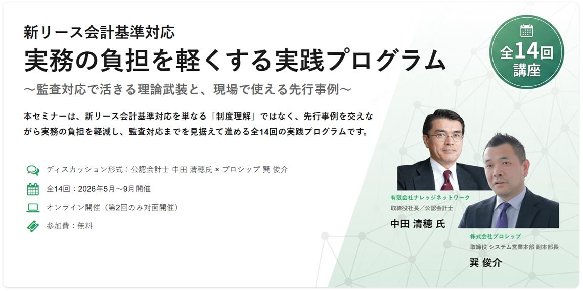 【プロシップ】新リース会計基準、実務対応の現場に直接聞く!「狭く・短く」するためのパネル討論&懇親会を開催 -