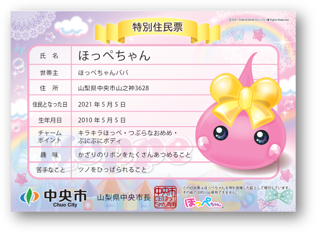 「平成カルチャーの象徴」がふるさと納税に降臨!生誕15周年を迎えた「ほっぺちゃん」が山梨県中央市の特別住民として返礼品に登場! -