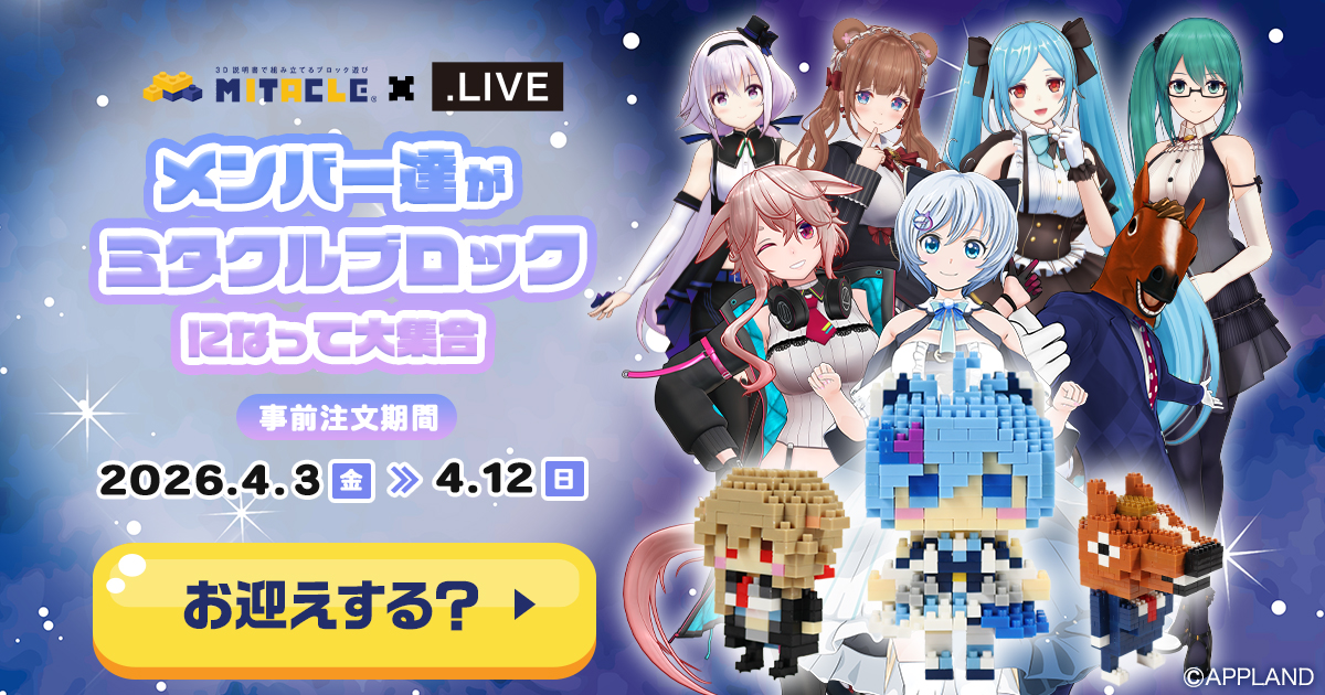 どっとライブ一期生がついに勢揃い!「.LIVE」×ミタクルブロック第3弾、もこ田めめめのミタクルブロック化とコラボ ポップアップショップが決定。4/3より事前予約開始 -