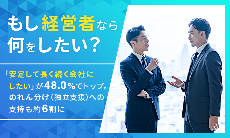 もし経営者なら何をしたい?「安定して長く続く会社にしたい」が48.0%でトップ。"のれん分け(独立支援)"への支持も約6割に -