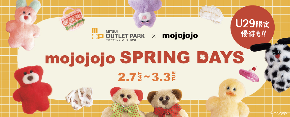 mojojojoキャラクターが三井アウトレットパーク 木更津にやって来る!カワイイぬいぐるみで大人気のmojojojoとタイアップした「mojojojo SPRING DAYS」を開催!