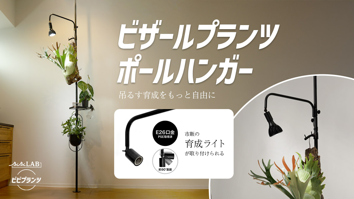 【ビカク初心者向け】つっぱり式の植物ポールハンガーが発売。育成ライトも取り付けられて、お部屋の緑がぐんぐん育つ! -
