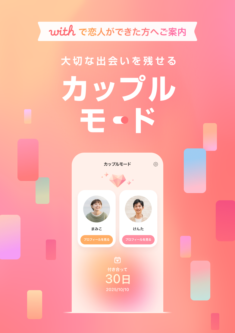 新規ダウンロード数No.1のマッチングアプリ「with」、交際を開始したお二人の思い出を残す新機能「カップルモード」を提供開始