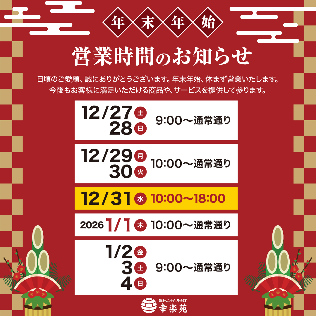 幸楽苑は今年も年末年始を休まず営業!新年のお祝いに最適な商品も特別価格で販売中!!(PR TIMES グルメ)