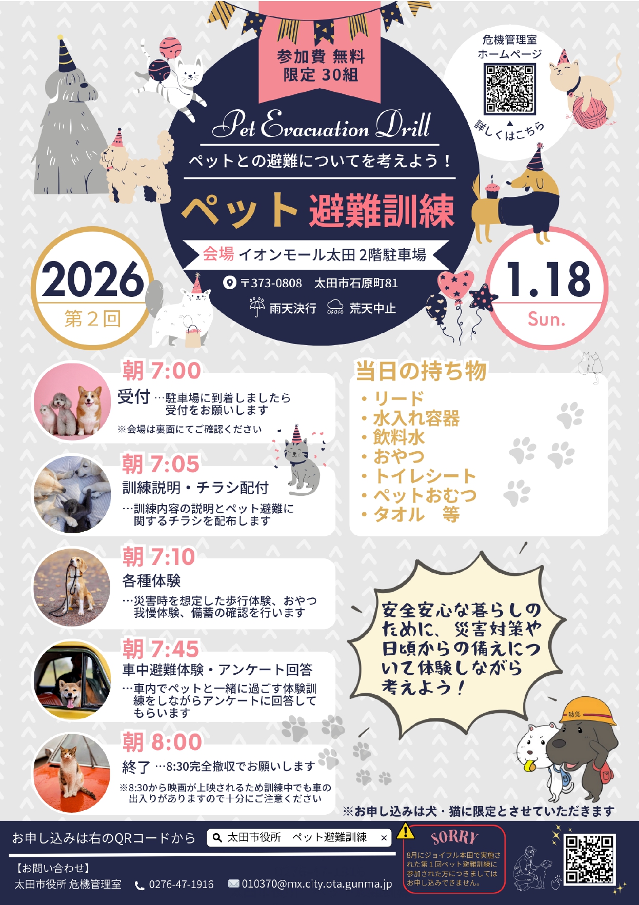 【群馬県太田市】災害が起きたとき、大切なペットとどう避難する!?「第2回ペット避難訓練」開催します!!